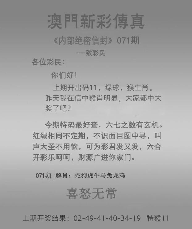 | 070期: ⑥肖 | 狗羊猪兔虎鸡 | 猴11 |