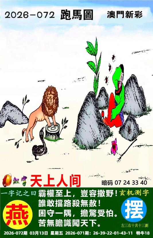 | 071期: ⑤肖 | 猪羊蛇狗马 | 牛18 |